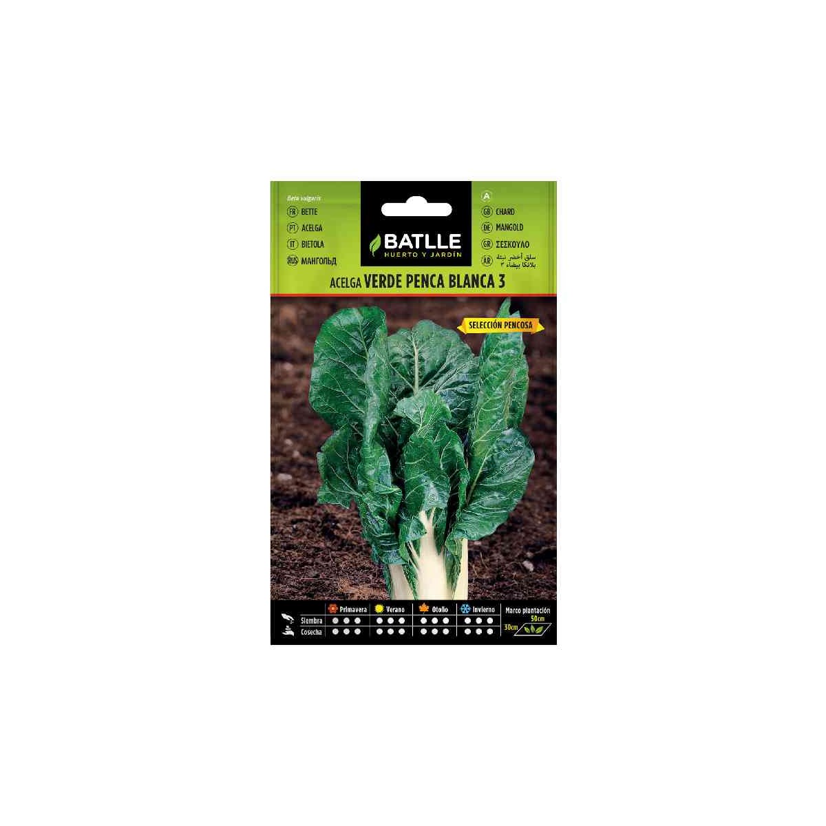 La semilla de Acelga Verde Penca Blanca es una variedad de acelga de hojas abundantes, caracterizada por sus hojas de color verde intenso y gran tamaño, con pencas blancas, anchas, muy carnosas y tiernas.